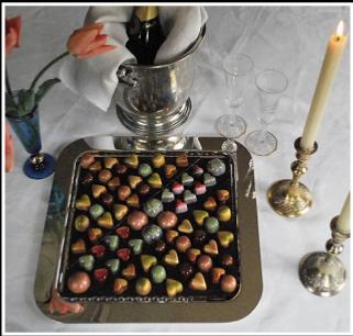 Holiday parties will never be the same with one of our silver-plated trays, delivered with the chocolates of your choosing. Or enjoy a few chocolates on a china plate, a beautiful finish to an intimate dinner party. Help us create a wedding favor your guests will long remember. And imagine spring celebrations when your kids can meet all sorts of yummy critters, including our super special Passion Frogs and Baby Frogs.